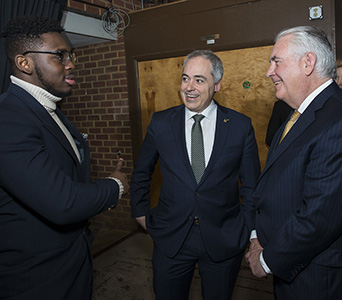 Mason student body president David Kanos, who is from Nigeria, had a front-row seat for the event. He also had a chance to speak with Tillerson—one of the perks, he said, of attending a university that has become a consistent destination for national leaders to speak about important issues.