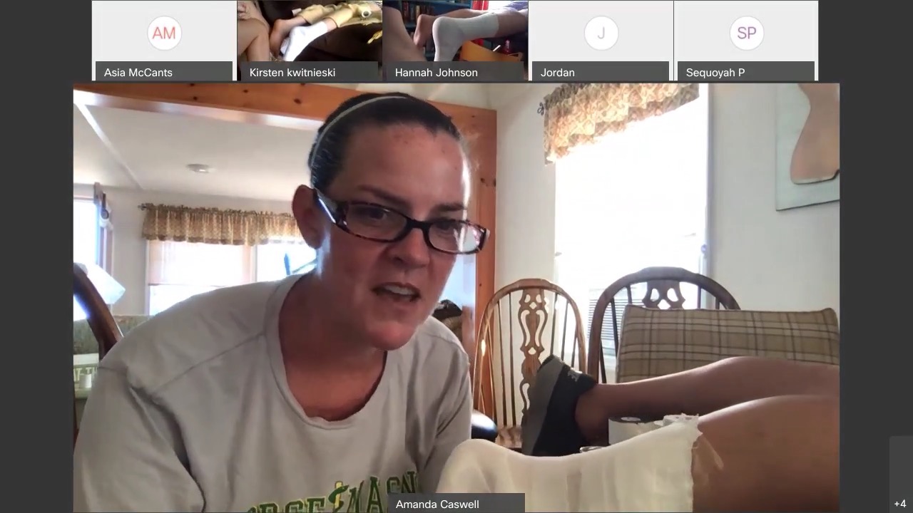 Improvising, Caswell created videos of the techniques, which her students watched, then practiced on camera using family members and friends. Caswell said the videos and online practice sessions worked out so well, she’ll continue their use in the future.
