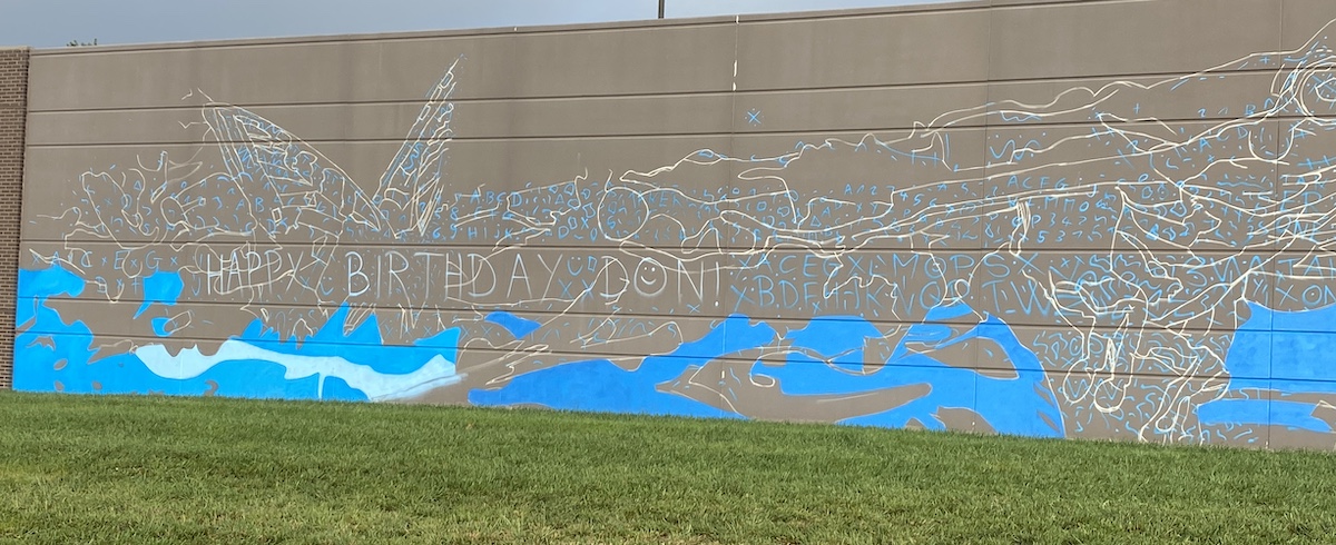 Molly Grove, director of campus relations for Mason’s Science and Technology Campus, is essentially the “customer” for this project. Working with the support of the Prince William County Board of Supervisors, the Belmont Bay Homeowners Association, and Carruthers Properties, Groves requested the mural and found donors to support the project.