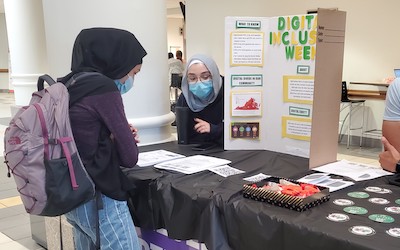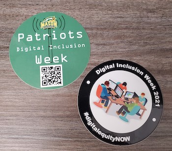 Students put together an advocacy campaign as part of Digital Inclusion Week to raise awareness about the digital divide. Students in each section of the course divided into three groups: fundraising, digital content, and in-person activities. Students also created a website, pamphlets and flyers, and distributed stickers highlighting digital inclusion.