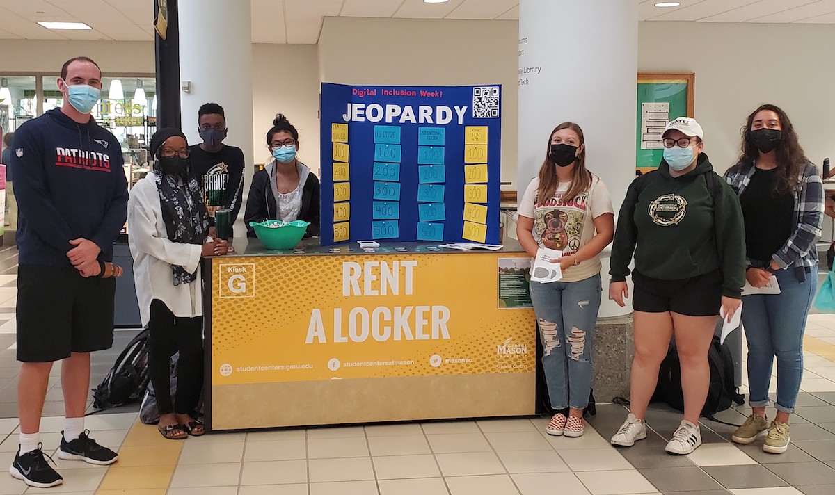They created a Jeopardy!-style game to share with people in the Johnson Center, where people answered such questions as “What percentage of the elderly don’t have access to technology?” Answer: 27%, and “Which language is 60% of the internet written in?” Answer: English.