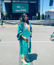 After graduating from the School of Business with her BS in accounting, Melissa Perera returned to complete her masters and get another leg up on her competition. Perera’s hard work was rewarded with the 2021 Graduate Division Emerging Business Leader Award.