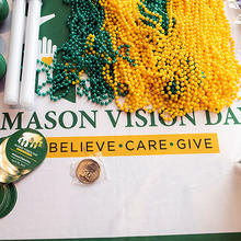 This year, that cause supported by Mason Vision Day was the Green Machine Ensembles, a group made up of hundreds of students, alumni, and community members devoted to celebrating the power of music to inspire spirit and shape lives.