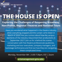 Arts Management students and faculty recently participated in a conversation between Associate Professor Carole Rosenstein and immediate-past Executive Director of the President’s Committee on the Arts and Humanities (PCAH) Megan Beyer.